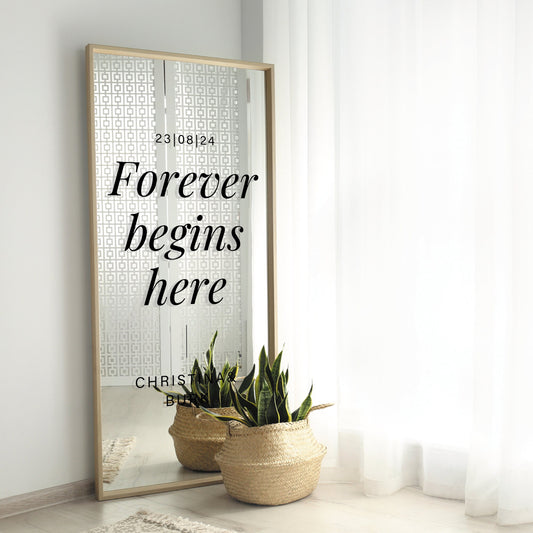 Forever Begins Here - Wedding Sticker: Vinyl Decal for DIY Wedding Sign, Personalised Wedding Mirror, Custom Sticker For Wedding Party Decor