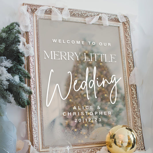 Personalised 'Merry Little Wedding' Wedding Sticker - DIY Sign for Festive Winter Weddings, Custom Decal, Elegant Christmas Wedding Decor