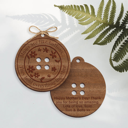 Mums Are Like Buttons Plaque: Personalised Wooden Hanging Sign, Meaningful Mother's Day Gift, Mum Appreciation Quote, Cute Present For Mum