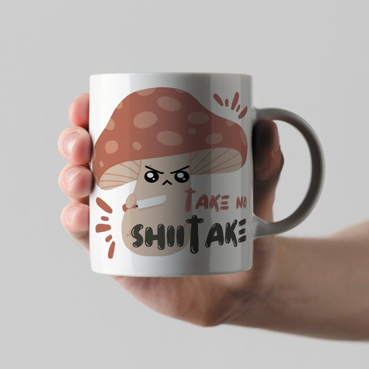 Take No Shiitake Mug - Funny Mushroom Pun Gift, Hilarious Coffee Cup, Witty Humour, Unusual Present, Cottage Core, Gift For Mushroom Lover