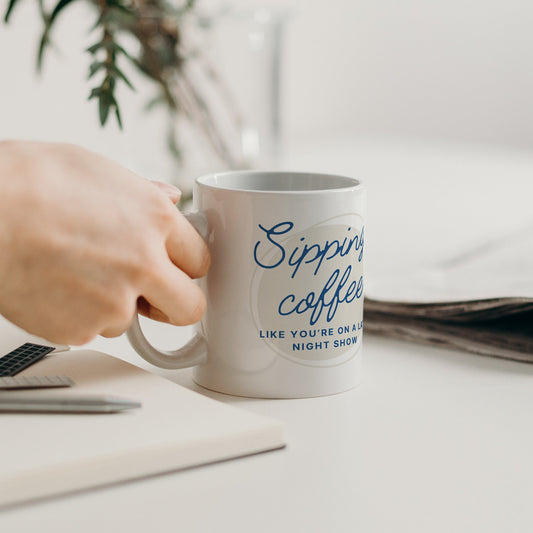 Sipping Coffee - Script Mug: Lyric-Inspired Mug, For Music Lover, coffee Gift, Song Quote, Pop Culture Gift, Small Gift Idea