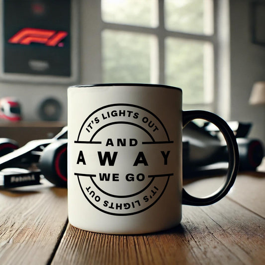 Lights Out - Sleek Mug: "Lights Out and Away We Go" F1 Start Quote Mug, Formula 1 Gift, Racing Gift For Him, For Dad, Stocking Filler