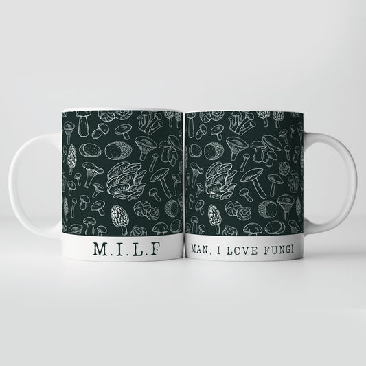 M.I.L.F Mushroom Mug - Man I Love Fungi - Funny Quote Mug, Cottage Core Accessory, Mushroom Mug Gift For A Forager or Mushroom Lover