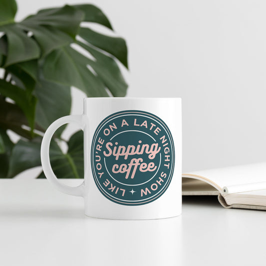 Sipping Coffee - Retro Blue Mug: Lyric-Inspired Mug, For Music Lover, coffee Gift, Song Quote, Pop Culture Gift, Small Gift Idea