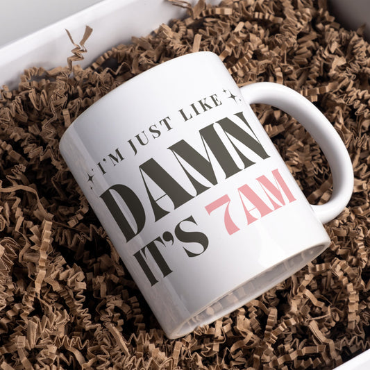 Damn, It's 7 AM: Lyric-Inspired Mug - Coffee Lover's Gift, Quirky Morning Cup, Song Quote, Pop Culture Gift, Small Gift or Stocking Filler