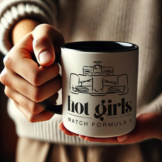 Hot Girls Watch F1 - Sketch Mug: Funny F1-Inspired Mug for Racing Fan, Formula 1 Gift Idea For Her, Small F1 Gift, Car Lover