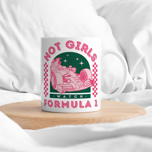 Hot Girls Watch F1 - Checkered Mug: Funny F1-Inspired Mug for Racing Fan, Formula 1 Gift Idea For Her, Small F1 Gift, Car Lover