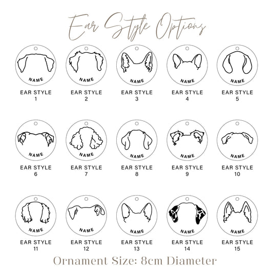 Personalised Dog Ear Ornament - Personalised Dog Line Art Christmas Holiday Decor, Wooden Pet Xmas Bauble, Christmas Tree Pet Puppy Ornament