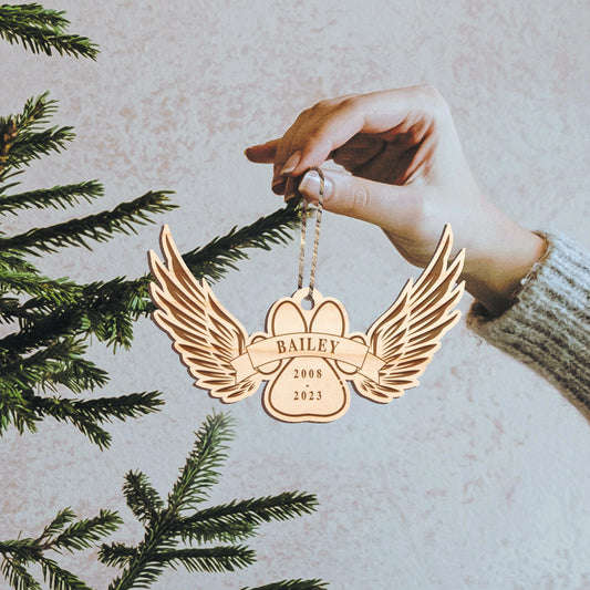 Personalised Pet Memorial Christmas Ornament - In Memory Of Custom Pet Name, Wooden Xmas Bauble Decoration, Dog or Cat Christmas Tree Decor