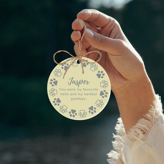 Favourite Hello - Paw Border: Personalised Pet Memorial Hanging Sign, Pet Loss Gift, Cat or Dog Tribute Plaque, Sorry For Your Loss Gift
