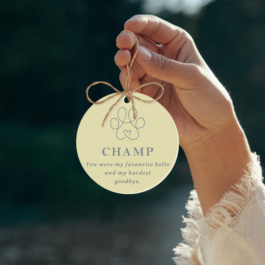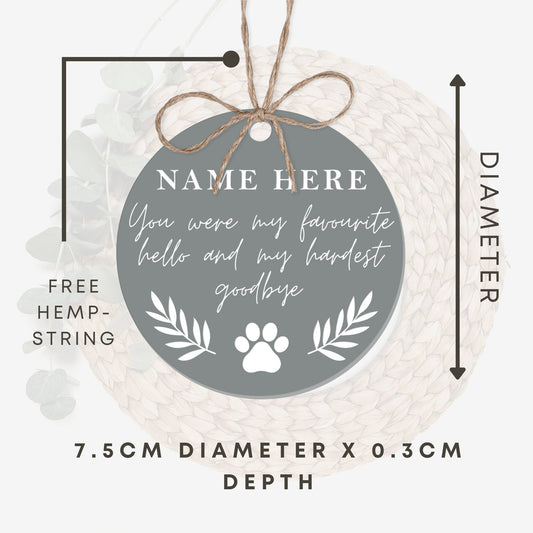 Favourite Hello - Script: Personalised Pet Memorial Hanging Sign, Pet Loss Gift, Cat or Dog Tribute Plaque, Sorry For Your Loss Gift