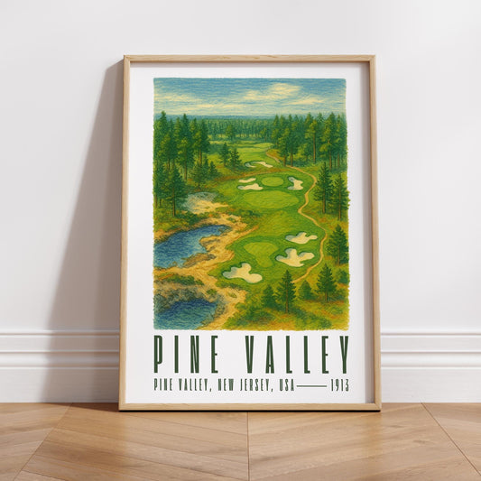 Pine Valley Golf Poster Illustrated Golf Course Wall Art | Pine Valley New Jersey Print | Golf Decor | Gift for Him | Father's Day Gift