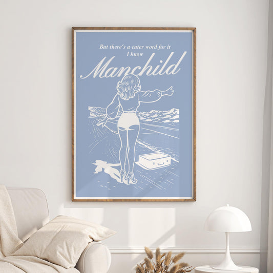 Manchild - Retro Pin-Up Poster: Pop Lyric-Inspired Print | Music Wall Art | Aesthetic Song Quote Print | Gift for Her | Girly Home Decor