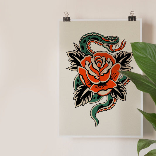 Traditional Tattoo - Snake Poster: Tattoo Flash Sheet Art Poster, Vintage Designs, Classic Ink-Inspired Wall Decor, Alternative Home Decor