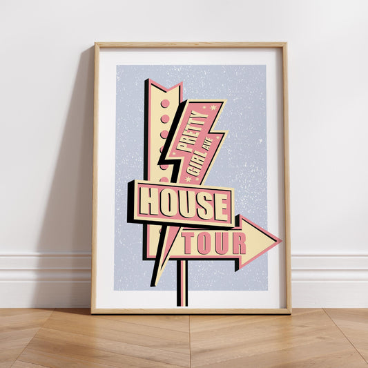 House Tour Retro Motel Sign Poster Vintage Lyric Inspired Wall Print | Neon Sign Style Artwork for Bedroom, Kitchen & Living Room