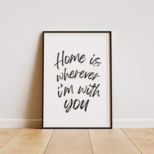 Home is Wherever I'm With You - Minimal Poster: Aesthetic Home Decor, Cute Quote, Bedroom Wall Art, Living Room Poster, Typography Print