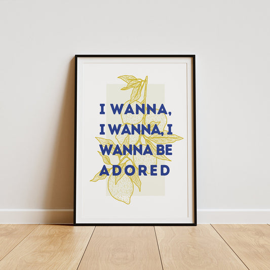 Wanna Be Adored - Lemon Poster: The Stone Roses Song-Inspired Lyric Print, Alternative Wall Art Print, Iconic Quote, Music Home Decor