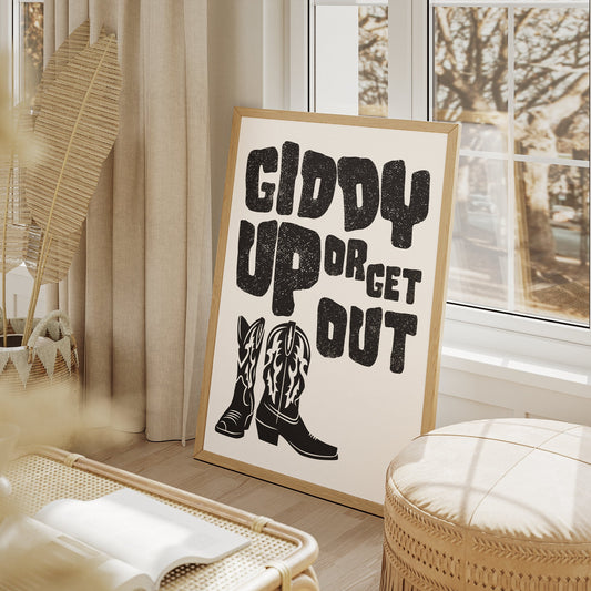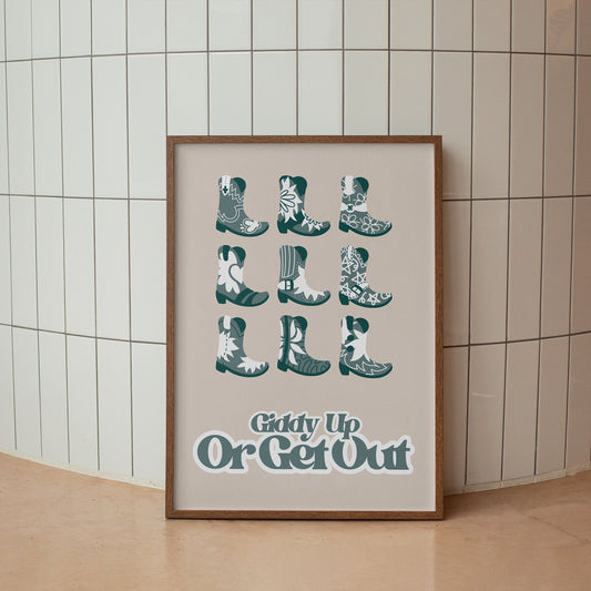 Giddy Up Or Get Out Boots Print, Home Decor, Gallery Wall Art, Cowgirl/Cowboy Inspired, Country Themed, Western Inspired, Bold Font Poster