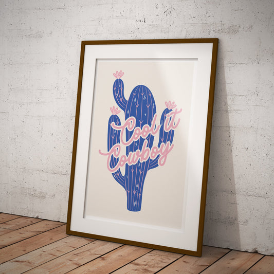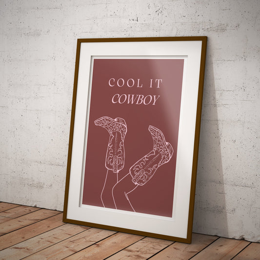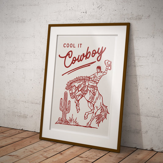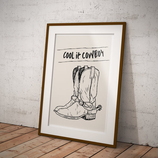 Cool It Cowboy 01 Poster: Western-Themed Wall Art, Rustic Home Decor, Cool Print, Modern Typography Poster, Cowboy Quote, Wild West Print