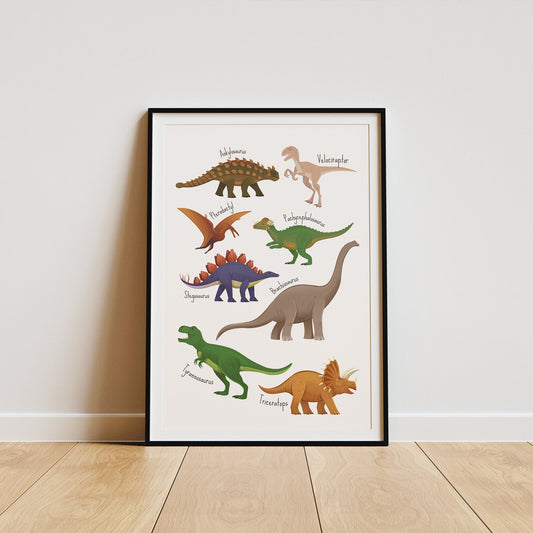Dinosaur Names Poster: Illustrated Dinosaur Print, Educational Poster, Kids room decor, Paleontology, Children's Room Decor, Classroom