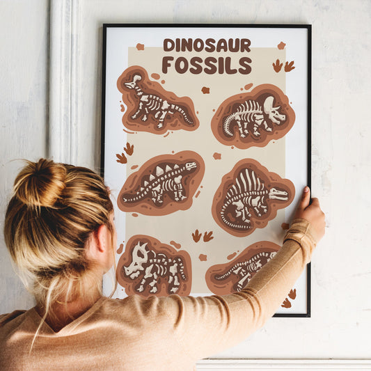 Dinosaur Fossils Poster: Illustrated Dinosaur Fossils Print, Kids room decor, Paleontology, Children's Room Decor, Rustic Dinosaur Print