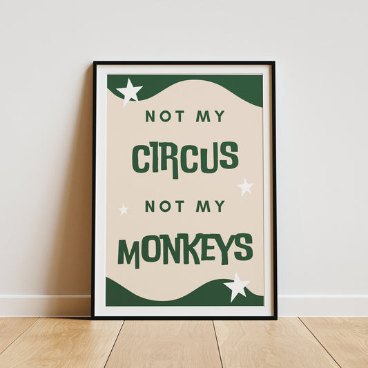 Not My Circus, Not My Monkeys - Green & Beige Poster: Cool Print Home Decor, Gallery Wall Art, Bold Typography, Unique Wall Art, Funny Quote