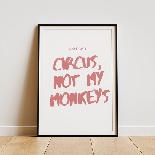 Not My Circus, Not My Monkeys - Pink & White Poster: Cool Print, Home Decor, Gallery Wall Art, Bold Typography, Unique Wall Art, Funny Quote