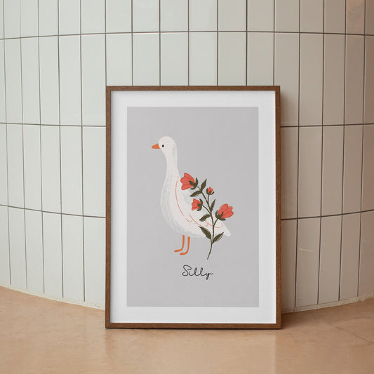 Silly Goose Wall Art, Goose And Flowers Design, Bedroom Poster, Funny Home Decor, Trendy Wall Art, Modern Design, Silly Animal Prints