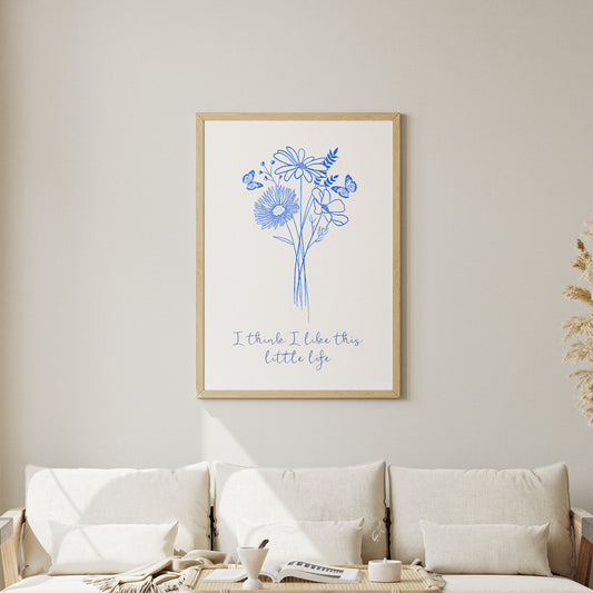 I Like This Little Life Blue Flower Poster: Modern Art, Home Decor, Trendy Wall Art - Aesthetic Print, Bedroom, Entry Way, Living Room