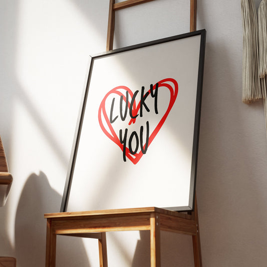Lucky You - Red Heart Design Poster, Home Decor, Trendy Wall Art, Bedroom Poster, Living Room Poster, House Wall art, Modern Poster Design