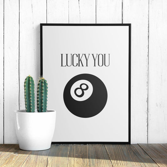 Lucky You - 8 Ball Design Poster, Home Decor, Trendy Wall Art, Bedroom Poster, Living Room Poster, House Wall art, Modern Poster Design