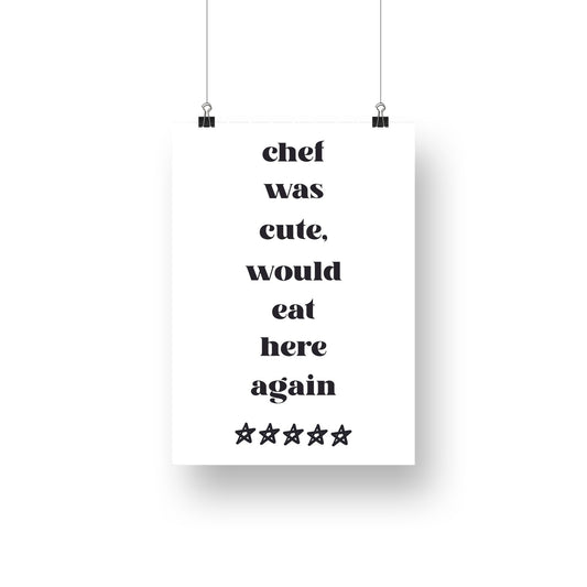 Chef Is Cute - Text, Kitchen Decor, Kitchen Poster, The Chef Is Cute Quote, Small Quote, Kitchen Wall Art, Unique Gift For Food Lover