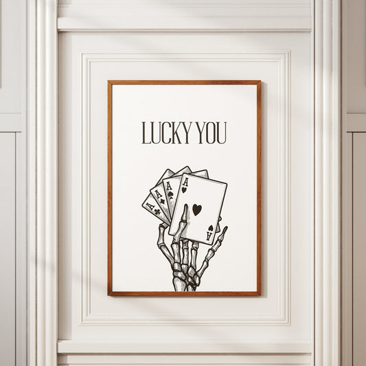 Lucky You - Skelton Cards Poster, Home Decor, Trendy Wall Art, Bedroom Poster, Living Room Poster, House Wall art, Modern Poster Design