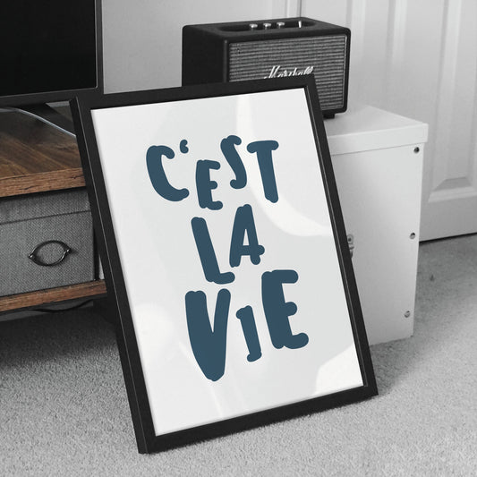 C'est La Vie - Bold & Blue Print: French Quote Poster, Wall Art, Affirmation Gift, Living Room Home Decor, Such Is Life, Modern Typography
