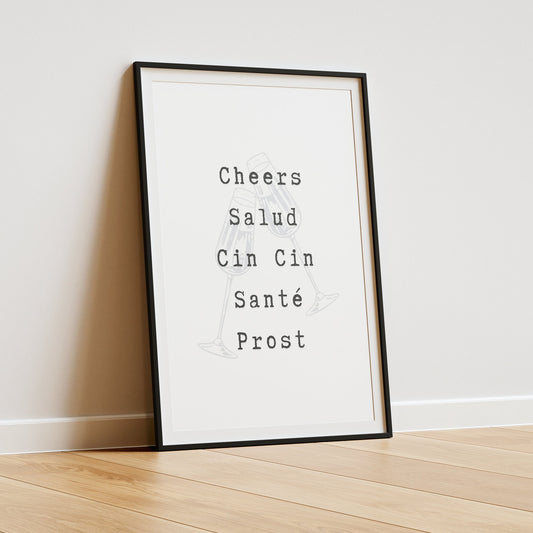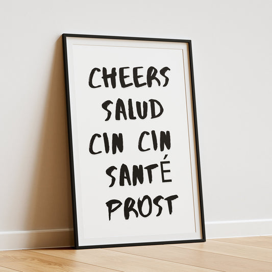 Cheers - Marker Pen Print: Cool Language Quote Wall Art, Toast Poster, Modern Home Decor, Typography Print, Home Bar or Kitchen Decor