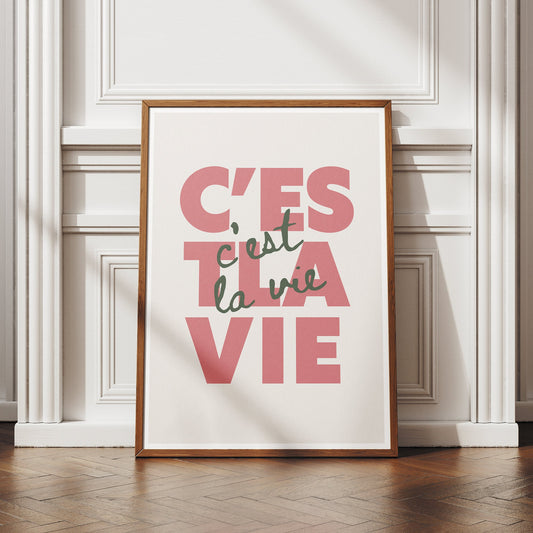 C'est La Vie - Pink & Green Print: French Quote Poster, Wall Art, Affirmation Gift, Living Room Home Decor, Such Is Life, Modern Typography