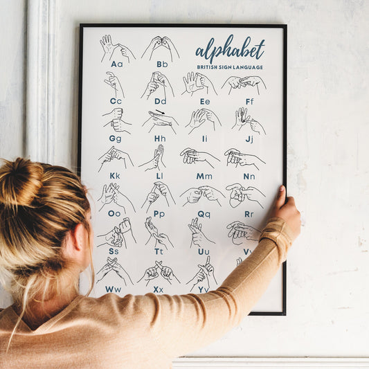 BSL Alphabet Poster: Illustrated Hand British Sign Language Print, Educational Poster, Visual Learners, Classroom or Homeschool Resource