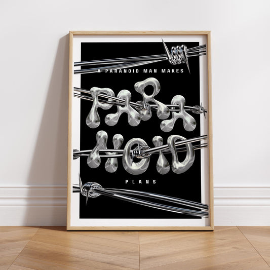 Paranoid Poster - Metalic Typography: Rap Pop Song-Inspired Print | Wall Art For Music Lover | Typography Lyric Quote | Modern Home Decor
