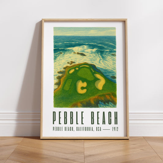 Pebble Beach Golf Poster | Illustrated Golf Course Man Cave Wall Art | Pebble Beach California Print | Golf Gift for Him | Father's Day Gift