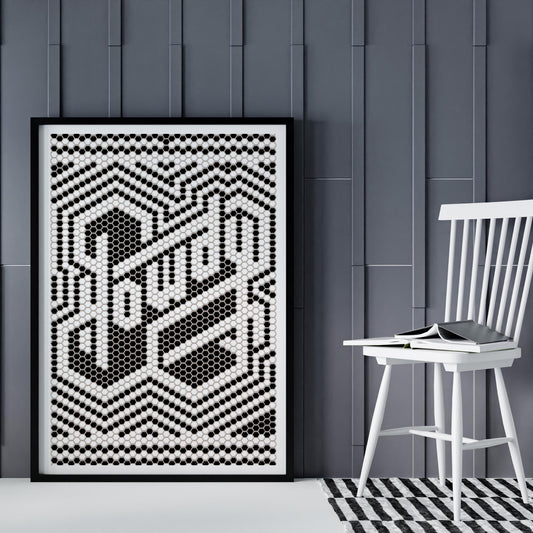 Howdy Mosaic Poster | Black and White Modern Home Decor, Hexagon Tile Print, Geometric Western Wall Art, Cowboy Theme Typography Decor