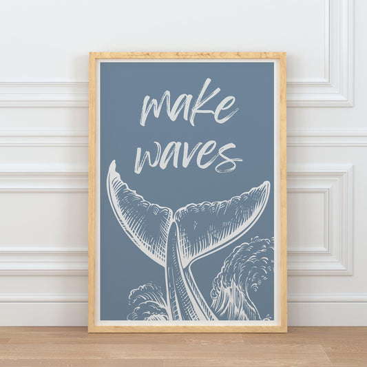 Make Waves - Whake Tail Poster: Ocean-Inspired Print, Coastal-Themed Room Decor, Sea Wall Art, Kids Bedroom Home Decor, Nautical Poster