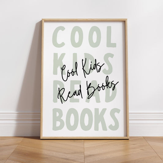 Cool Kids Read Books - Minimal Poster: Typography Print For Children, Book Lover Quote Wall Art for Reading Corner, Bedrooms & Playroom