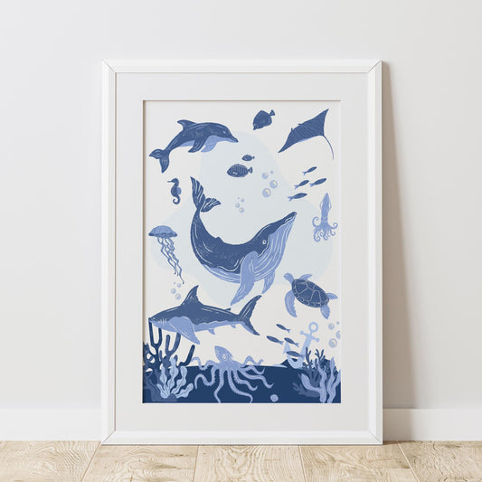 Ocean Life Poster: Underwater Sea Creature Illustration, Kids Room Wall Art, Ocean Animals Print, Under The Sea Theme Home Decor, Nursery