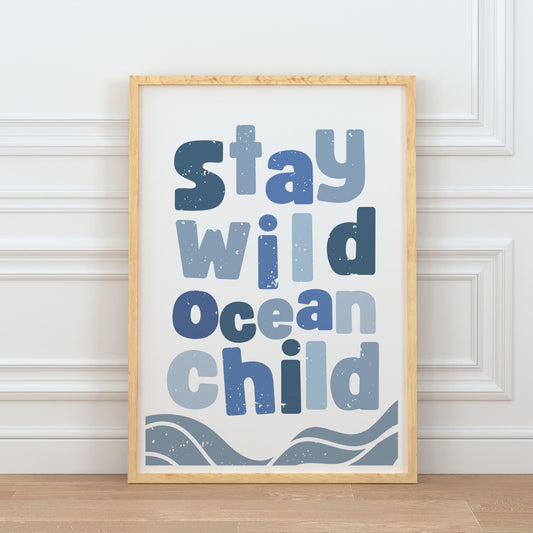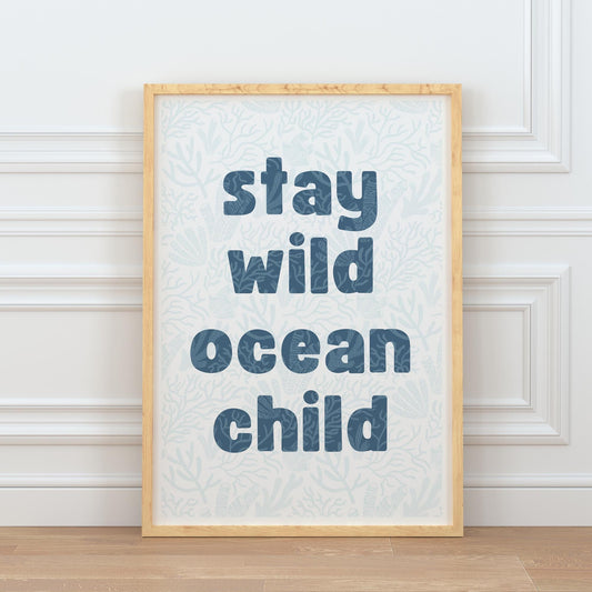 Stay Wild Ocean Child Wave-Themed Poster: Coral Reef Wall Art, Nautical Nursery Decor, Sea Inspired Kids Art Print, Ocean-Themed Home Decor