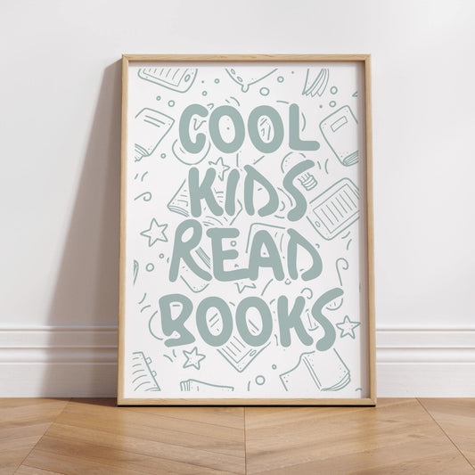 Cool Kids Read Books - Typography Poster: Bold Fun Print For Children, Book Lover Quote Wall Art for Reading Corner, Bedrooms & Playroom