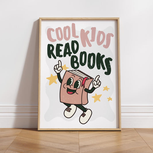 Cool Kids Read Books - Retro Book Poster: Typography Print For Children, Book Lover Quote Wall Art for Reading Corner, Bedrooms & Playroom