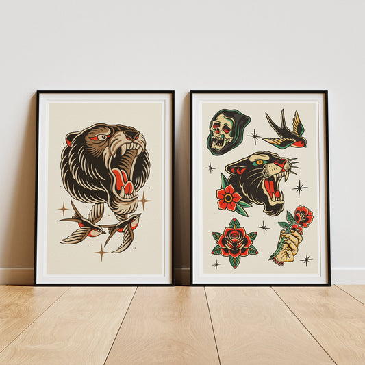 Traditional Tattoo - Bear Poster: Tattoo Flash Sheet Art Poster, Vintage Designs, Classic Ink-Inspired Wall Decor, Alternative Home Decor