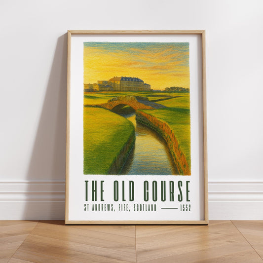 The Old Course St Andrews Golf Poster Illustrated Print | Swilcan Bridge | Home of Golf Man Cave Decor | Gift for Him | Father's Day Gift