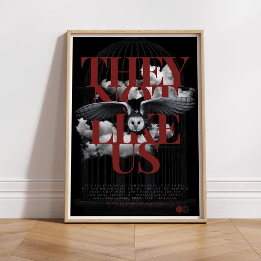 They Not Like Us - 02 Song Inspired Poster: Urban Wall Art, Owl Print, Edgy Wall Art, Dark Industrial Aesthetic, Rap Lover, Music Home Decor