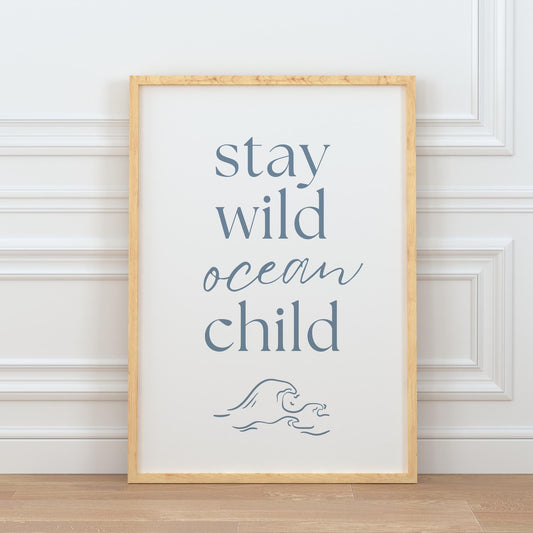 Stay Wild Ocean Child Minimalist Coastal Poster: Quote Wall Art, Nautical Nursery Decor, Sea-Inspired Kids Print, Ocean-Themed Home Decor
